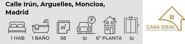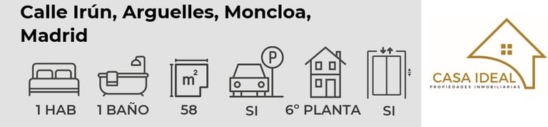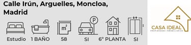 CASA IDEAL presenta este luminoso PISO ESTUDIO en alquiler ubicado en la calle de Irún, en el barrio de Argüelles (Madrid).
