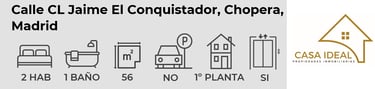 CASA IDEAL presenta en exclusiva esta vivienda en venta ubicada en la calle Jaime el Conquistador, en el distrito de Arganzuela, una de las zonas más consolidadas y demandadas de Madrid.
