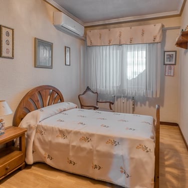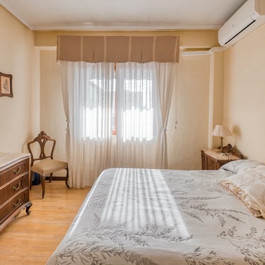 Entre sus características destacan el suelo de parquet, aire acondicionado, armarios empotrados y calefacción central con contadores individuales, por lo que el gasto se realiza por consumo individual. Su distribución cómoda y funcional convierte esta vivienda en una opción ideal tanto para familias como para quienes buscan una casa luminosa y amplia en una zona consolidada de Madrid.